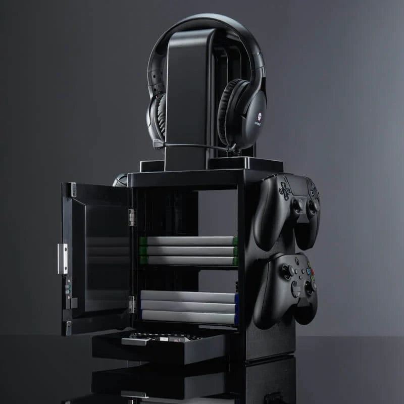 - Interior shelves can be adjusted or removed, allowing users to customize the space to accommodate different sizes of gaming accessories